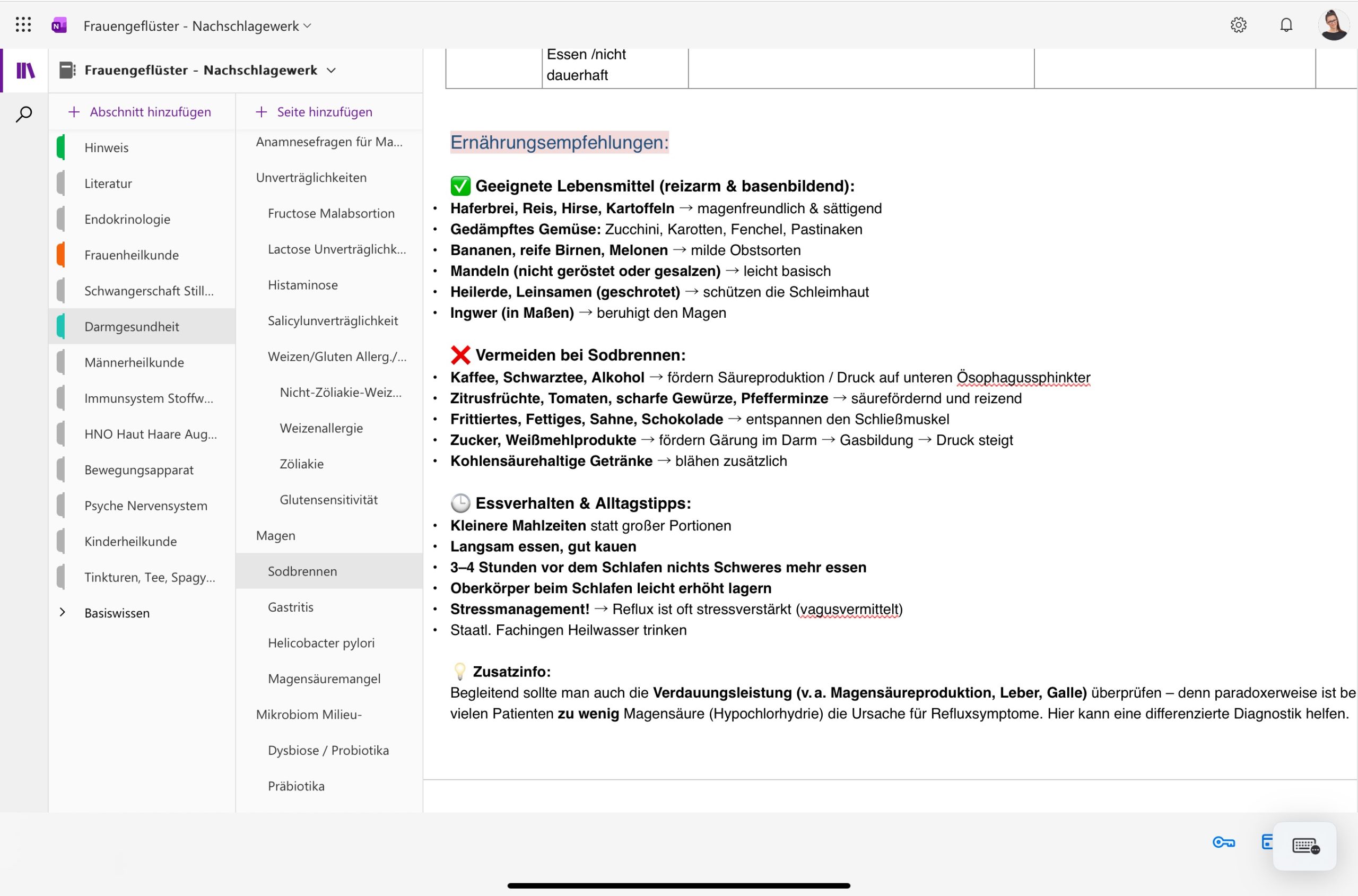 Jedes Nachschlagewerk ist als OneNote-Notizbuch aufgebaut und thematisch nach Indikationen gegliedert. Zu jeder Indikation findest du die Inhalte, die du für deine tägliche Arbeit wirklich brauchst – klar strukturiert und sofort einsatzbereit.